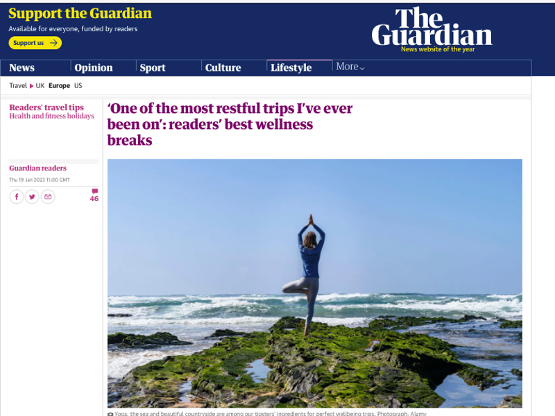 We are featured in the Guardian Newspaper's Readers' Best Wellness Breaks!