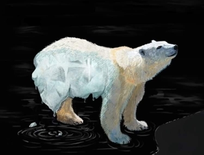 Plus a 3 minute interview with Jo Harp whose melting polar bear image featured on screen. See more of her work here.